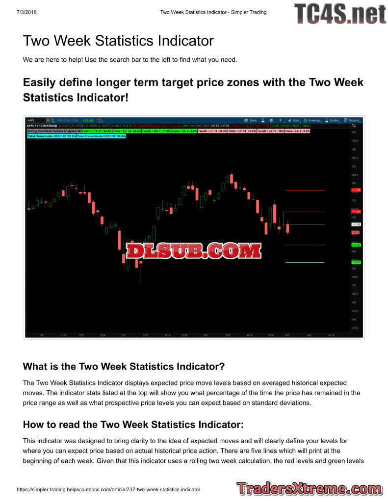 Two Week Statistics Indicator Simpler Trading - JPG Image File