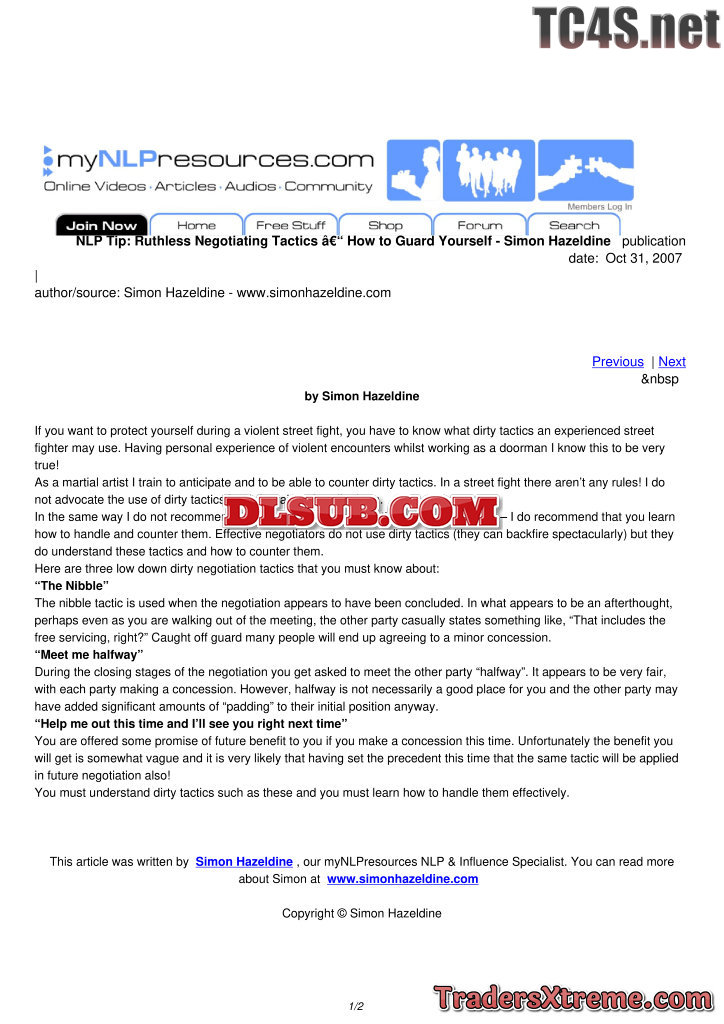Ruthless Negotiating Tactics How To Guard Yourself Simon Hazeldine - JPG Image File