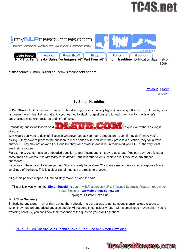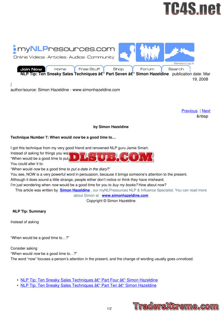 Ten Sneaky Sales Techniques Part One Simon Hazeldine - JPG Image File