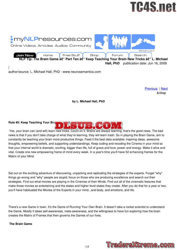 The Brain Game Part Ten Keep Teaching Your Brain New Tricks L Michael Hall Phd - JPG Image File