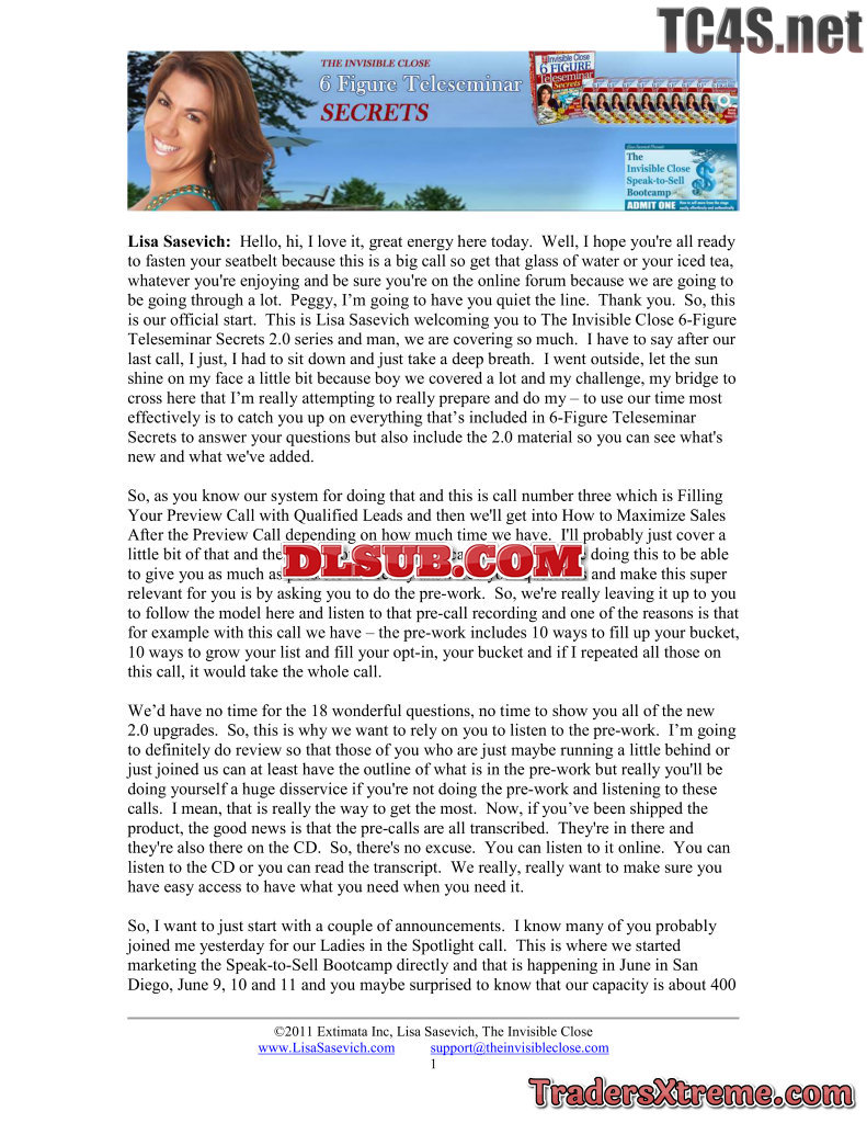 Lisa Sasevich 6 Figure Teleseminar Secrets