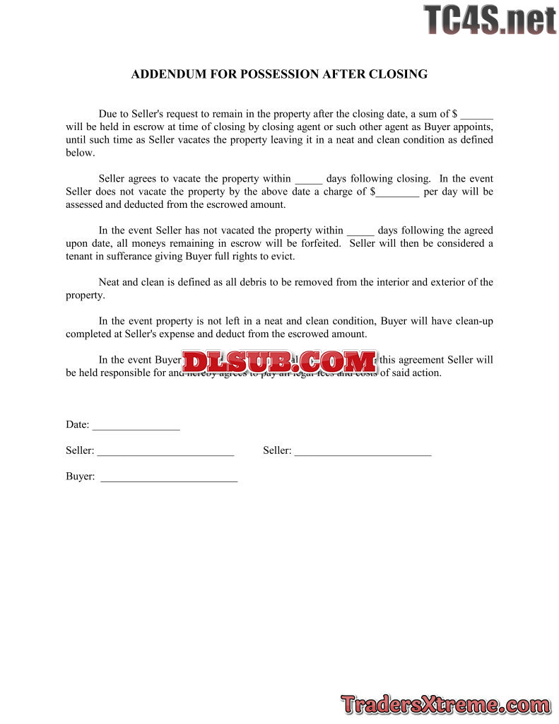 Addendum For Possession After Closing - JPG Image File