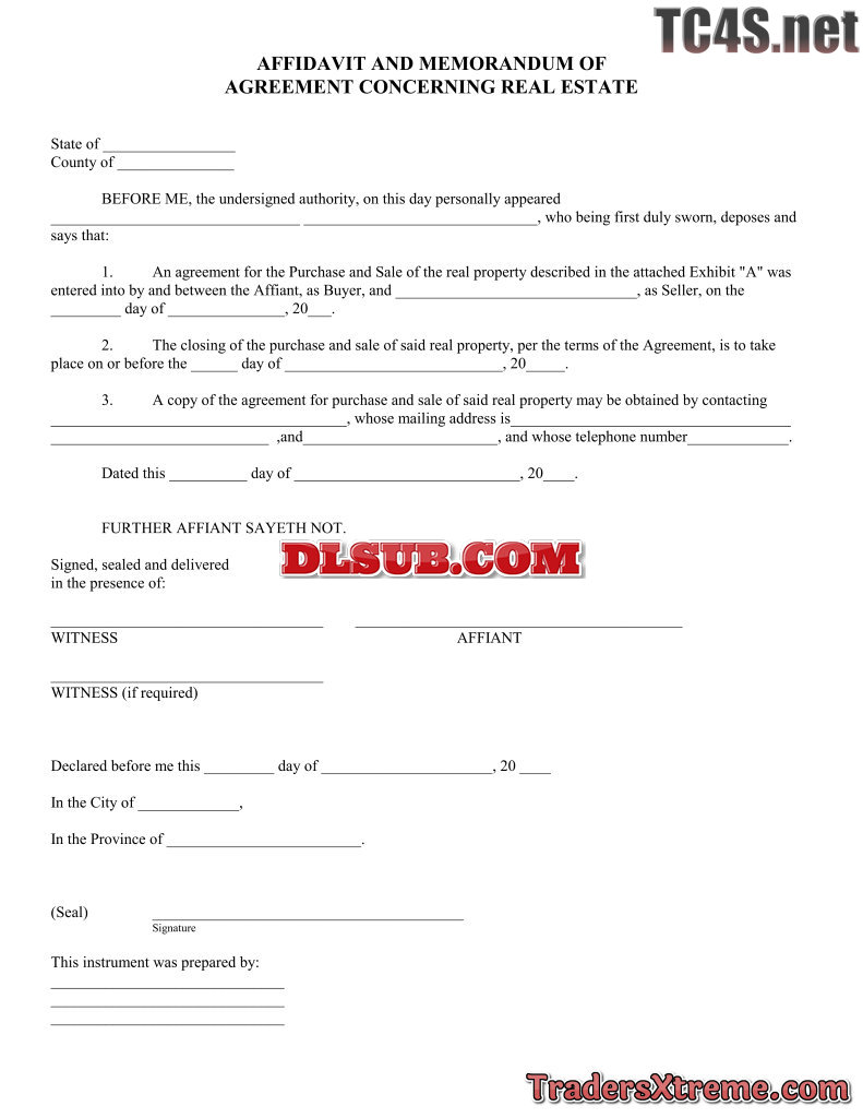 Affidavit And Memorandum Of Agreement Concerning Real Estate - JPG Image File
