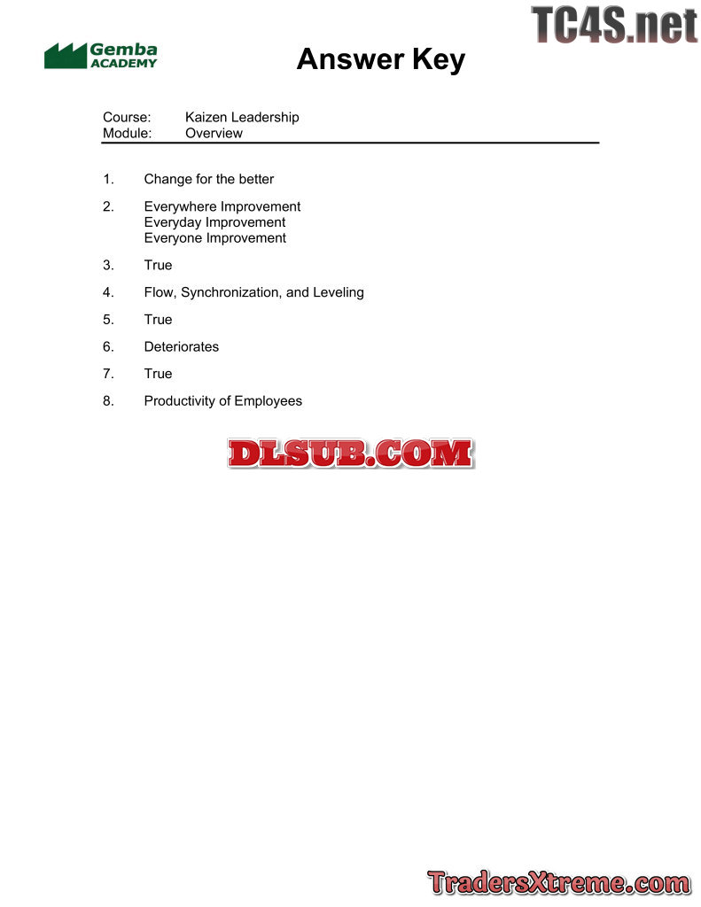 Quiz Answers Kaizen Leadership - JPG Image File