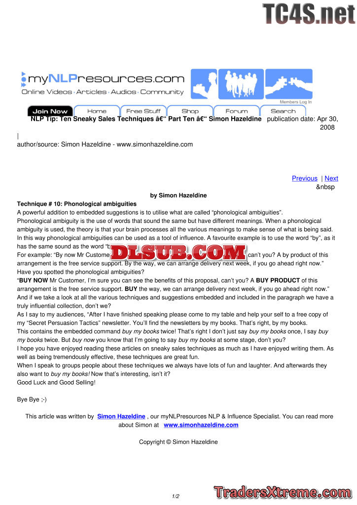Ten Sneaky Sales Techniques Part One Simon Hazeldine - JPG Image File