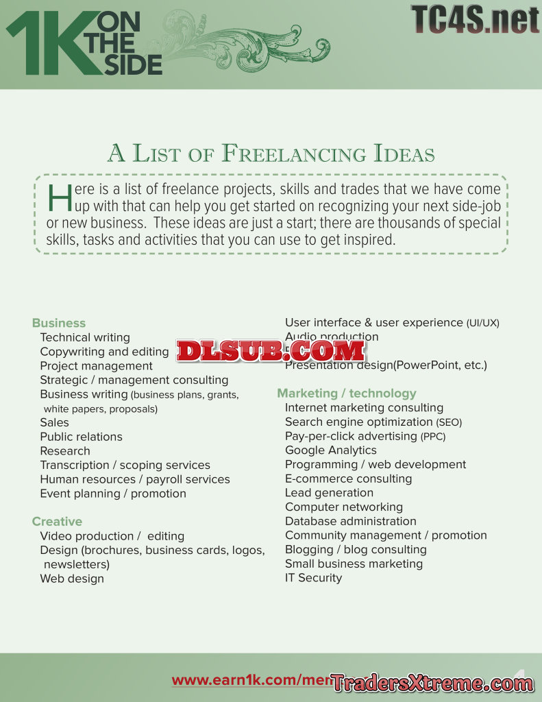 Worksheet Freelancing Ideas - JPG Image File