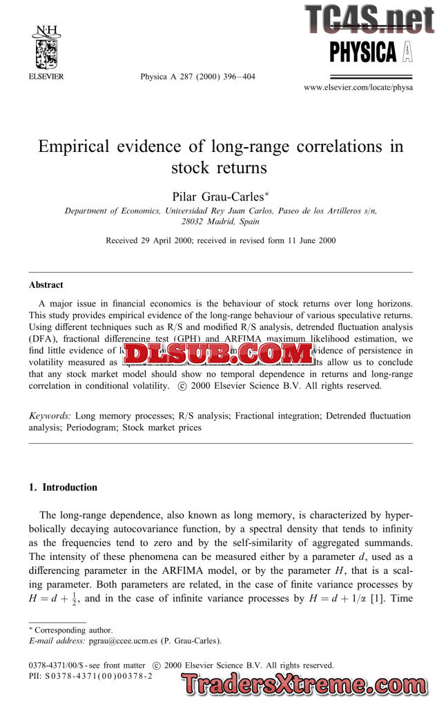 Empirical Evidence Of Long Range Correlations In Stock Return - JPG Image File