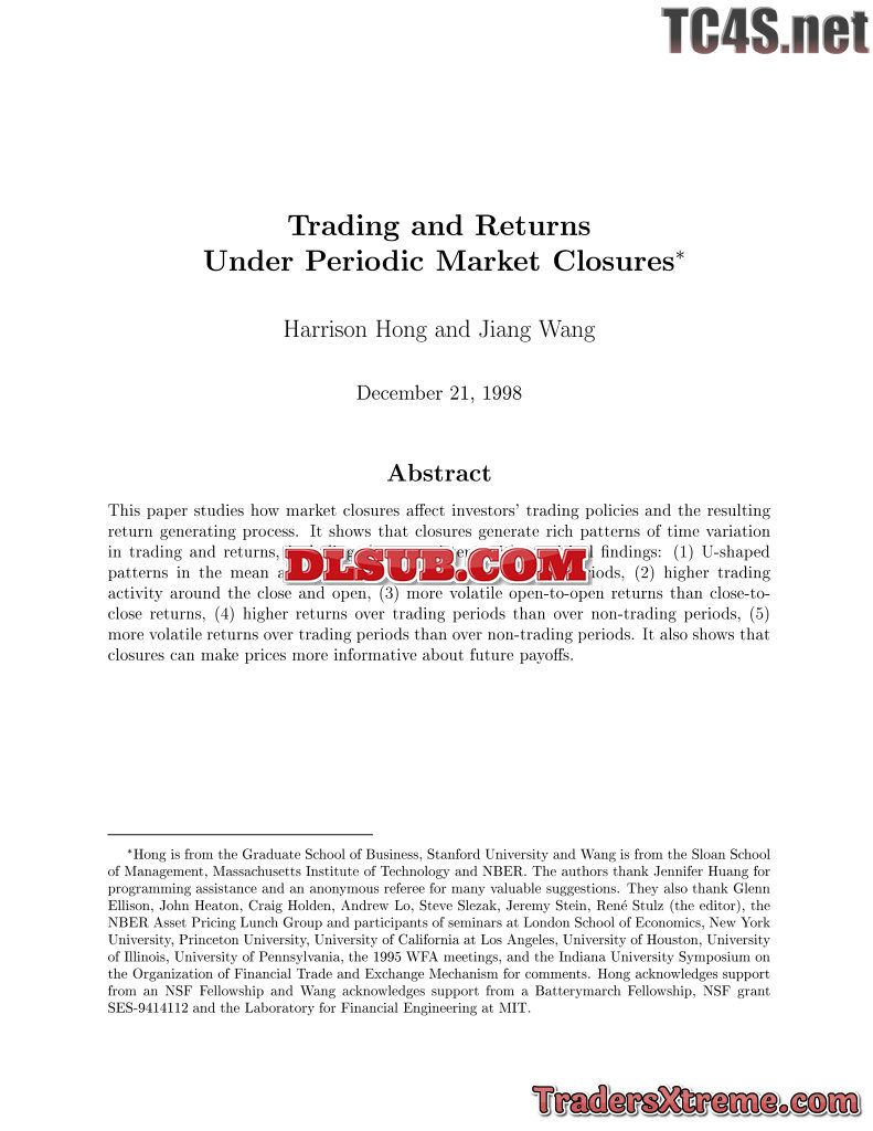 Harrison Hong And Jiang Wang Trading And Returns Under Market Closure