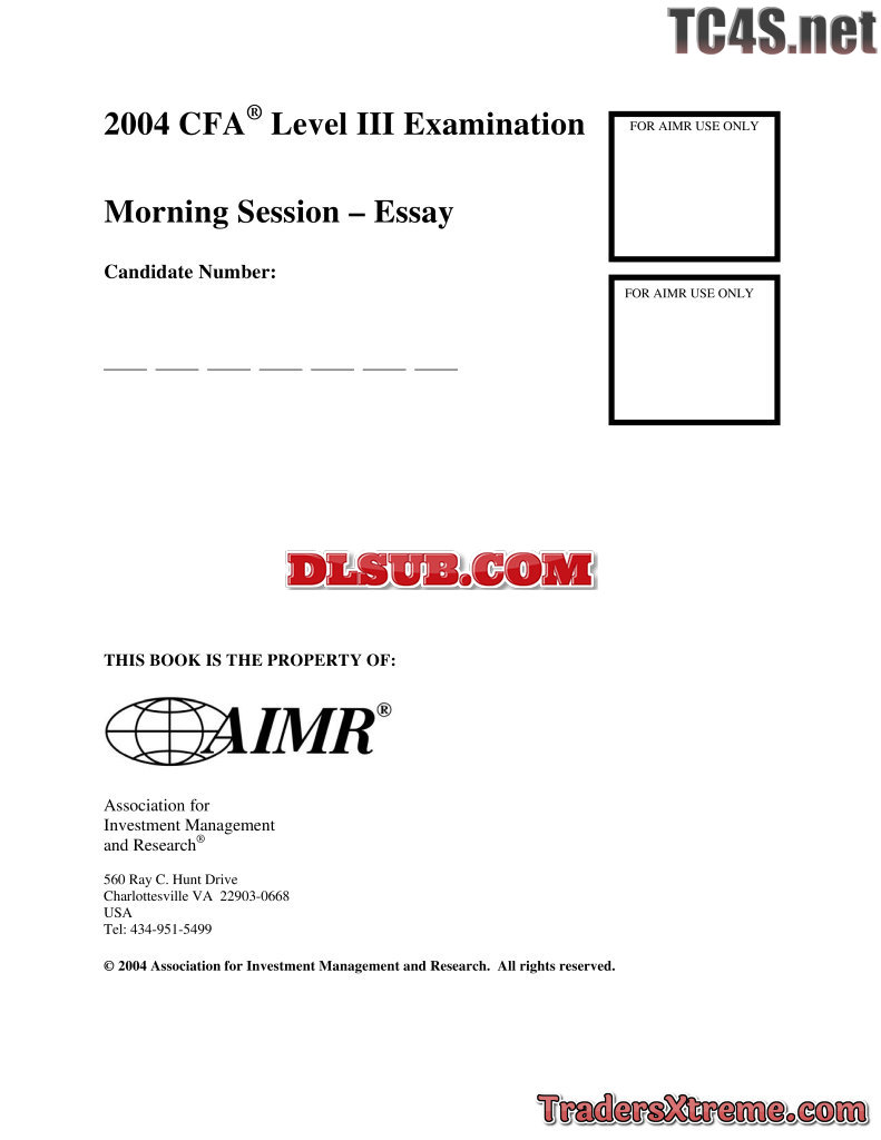 2004 Cfa Level 3 Examination Morning Session Essay