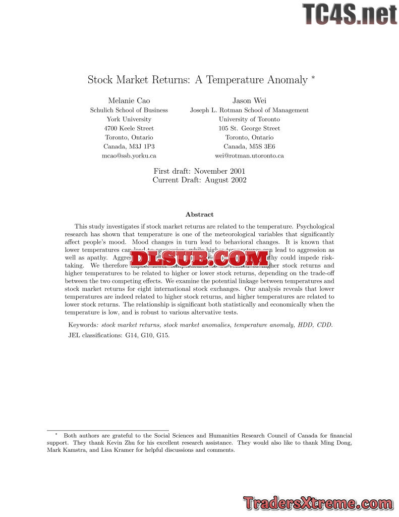 Melanie Cao And Jason Wei Stock Market Returns A Temperature Anomaly
