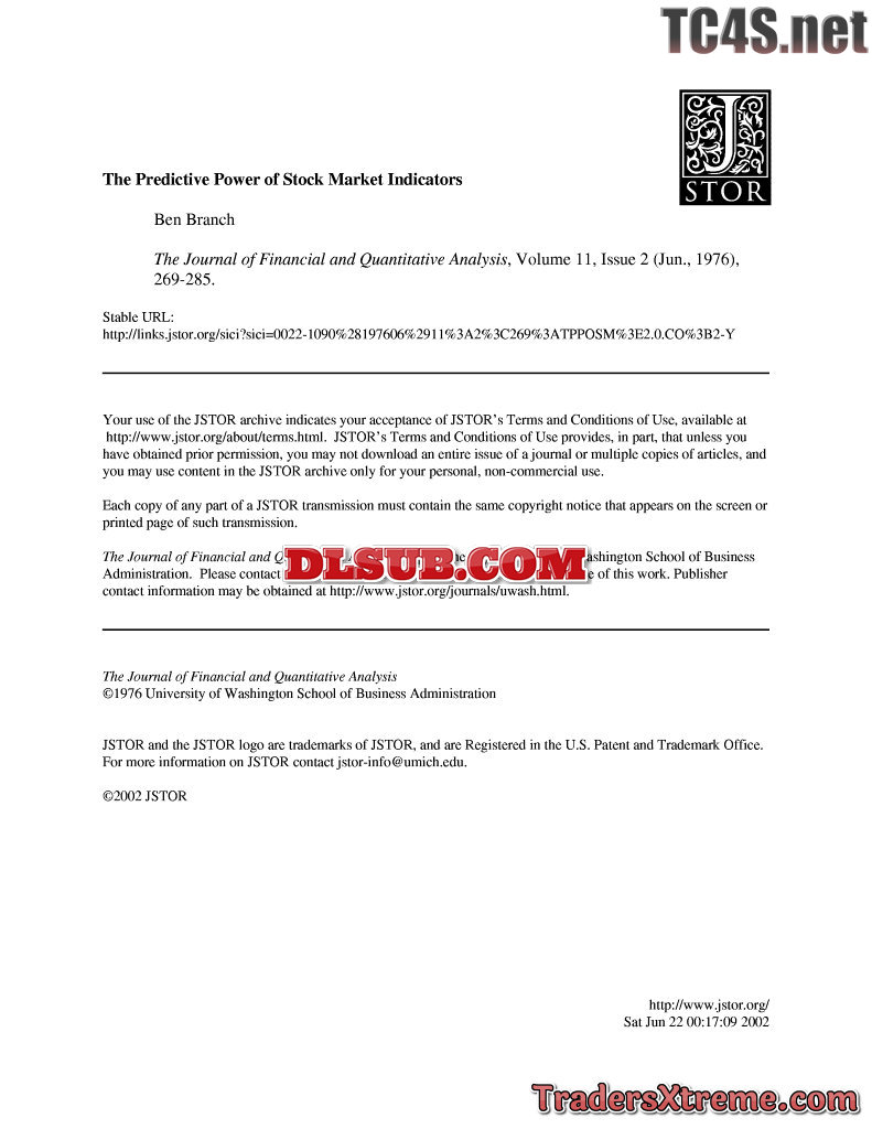 Ben Branch The Predictive Power Of Stock Market Indicators - JPG Image File