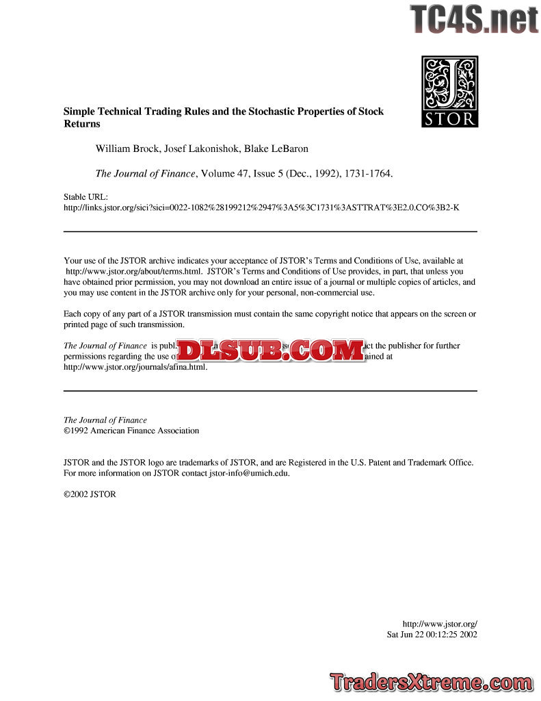 William Brock Et Al Simple Technical Trading Rules And The Stochastic Properties Of Stock Returns - JPG Image File