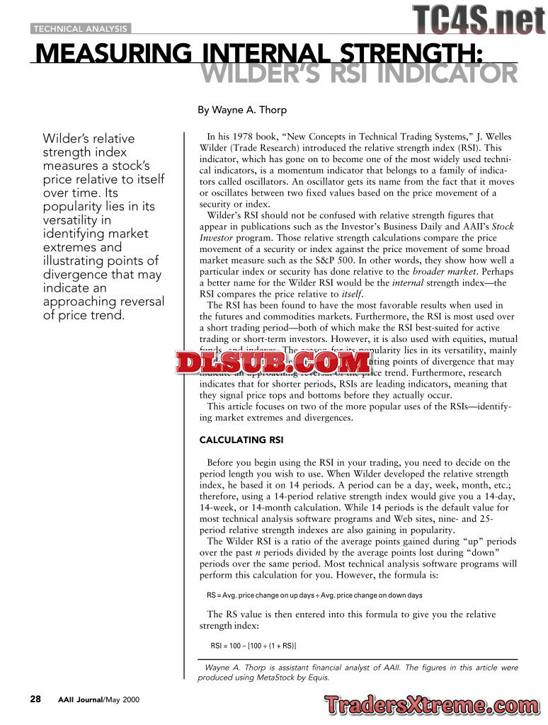 Wayne Thorp Measuring Internal Strength Wilders Rsi Indicator - JPG Image File